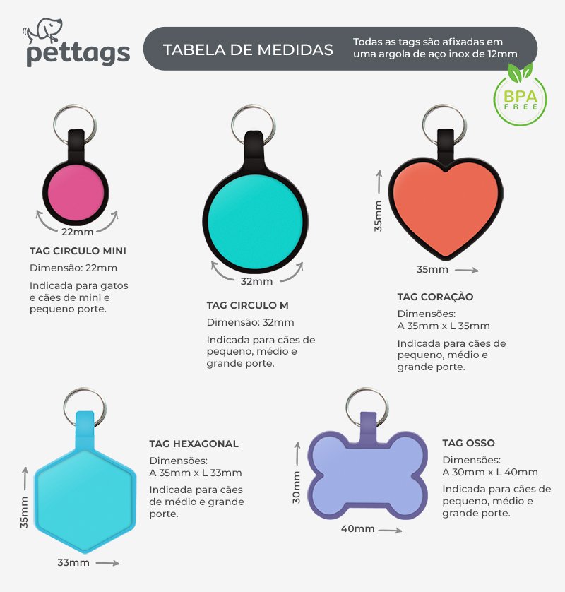 A tag de identificação é, sem dúvida, a maneira mais segura e rápida de trazer seu pet de volta, caso ele se perca. Seu pet com identificação é um sinal claro de que tem uma família que o ama e cuida. As pessoas estão mais propensas a ajudar um pet perdido se perceberem que ele é bem cuidado.